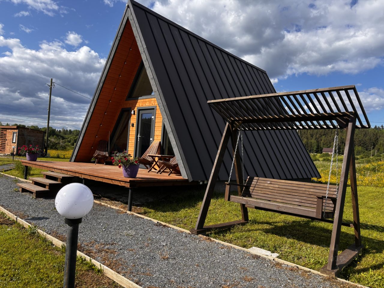 Гостевые дома Заречье — уютный a-frame на берегу реки с видом на лес.