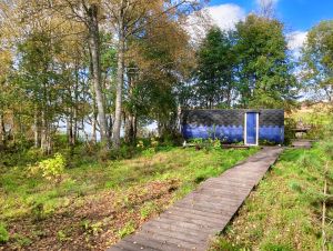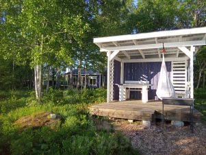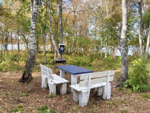 На территории имеется дровяная баня (один сеанс входит в стоимость проживания), беседка, пирс, с которого можно купаться и ловить рыбу, лодка для прогулок по озеру, в 15 минутах ходьбы есть магазины, где можно приобрести всё необходимое.