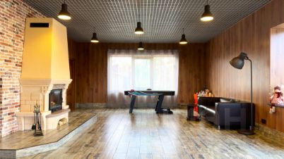 - есть банкетный зал для танцев и караоке, а так же просторный зал с камином, TV зоной, аэрохоккем, настольным футболом, теннисным столом и игровой зоной для детей