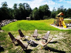 В доме 5 изолированных спален, с двуспальными кроватями. На первом этаже кухня, совмещенная с залом, финский камин туликиви, сауна, санузел, душ, две спальни. На втором этаже три спальни, большое помещение ( расположен второй туалет, стиральная машинка, сушилка, гладильная доска с утюгом), есть так же для маленьких наших гостей игровой уголок.