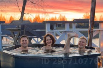 - Дровяной чан — после прохладного весеннего ветерка приятно погреться в горячей воде на берегу реки, любуясь закатом.