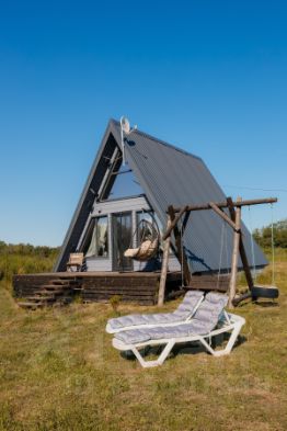 Дом формата А-фрейм вместимостью до 4 человек на берегу реки Мегрега