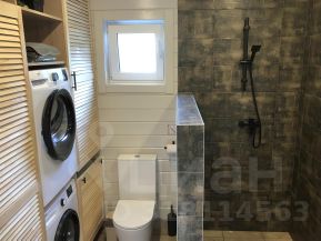 Большой современный с/у с душевой зоной в комплекте со стиральной и сушильной машинами.