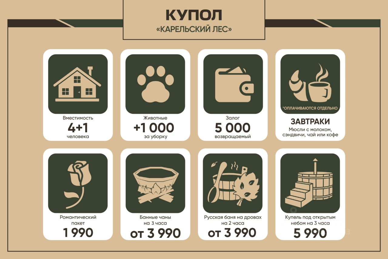 Уважаемые гости, просим обратить внимание, что цены указаны за проживание без завтрака, но его мы тоже можем предложить! Идеальное предложение для влюбленных пар, которые хотят провести романтический отдых вдали от дома. База отдыха ALDI-Karelia поможет наполнить отношения новыми впечатлениями и перегрузиться от городской суеты. Почему стоит выбрать именно нашу базу? Один из самых лучших сервисов в Карелии благодаря нашей команде. Уникальный микроклимат благодаря расположению на мысе. Наши дополнительные услуги и уникальный список партеров, которые помогут ярко провести досуг. Если сомневаетесь в выборе, то советуем ознакомиться с отзывами о нас. Мы уже обеспечили идеальные выходные сотням влюбленных пар и продолжаем развиваться! Выбирая нас просто невозможно плохо провести время.