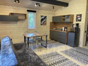 Новый коттедж 2025г. Площадь дома 50 кв.м. + терраса. Мангальная зона с шампурами. Для комфортного проживания дом рассчитан до 5-ти человек. В спальнях 2-х кровати, в кухне-гостинной раскладной диван на 2 спальных места.