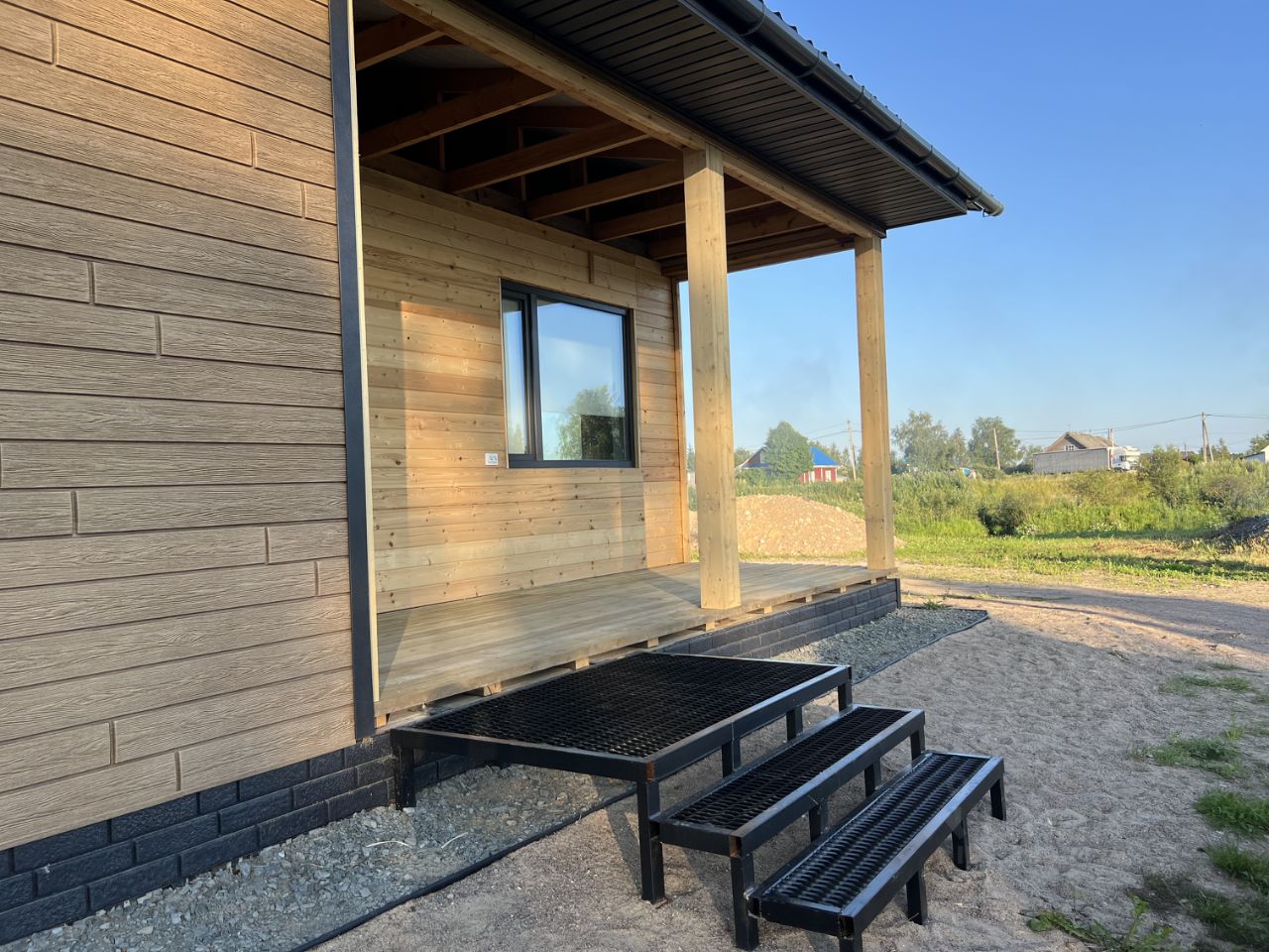 Дом с террасой, площадью 50 м2, оборудованный для комфортного проживания 4 человек. Изолированная спальная комната и большая кухня- гостиная.
