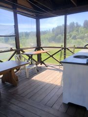 Дoм нe большой, но очень уютный, состоит из кухни , двух спален , санузла с душевой кабиной , баня с русской параной, и терраса. На уютной террасе можно расположиться компанией , предоставляется мангал, шампуры.