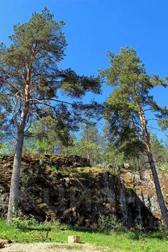 - живописная скала, сосны.