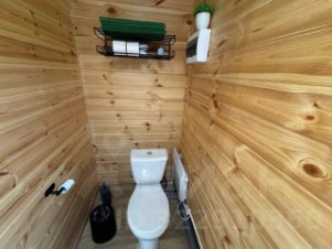 -Душ, раковина, унитаз, гигиентические принадлежности
