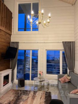 На первом этаже расположены большая гостиная с зоной отдыха и вторым светом, просторная комната с удобной двухспальной кроватью, душевая, санузел, сауна и кухня.