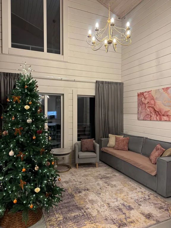 Дом рассчитан на комфортное проживание 6 человек. Размещение дополнительных гостей на диване в зоне отдыха на втором этаже и на диване в гостиной на первом этаже.