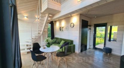 Лодж рассчитан для комфортного проживания 4 человек. На первом этаже расположен раскладной диван, а на мансардном этаже двухспальная кровать с ортопедическим матрасом. Дом оборудован всем необходимым: полноценной кухней со всей необходимой техникой и посудой, телевизор со smart tv. Гостям предоставляются постельные принадлежности, полотенца, шампунь, гель для душа, фен, дрова для камина, решетка для мангала.