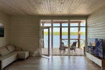 КРАСИВЫЙ ВИД С ОКОН КОТТЕДЖА НА ОНЕЖСКОЕ ОЗЕРО. ТЕРРИТОРИЯ ОБРАБОТАНА ОТ КЛЕЩЕЙ, КОМАРОВ, ЗМЕЙ!!! • Коттедж расположен на полуострове, рассчитан на 8+2 человек 140 м2 (1 этаж, 4 спальни). Дом постройки 2025 года.