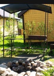 Для комфортного проживания имеется все необходимое: бытовая техника, посуда, чистое белье, горячая вода, душ, туалет. На участке имеется: мангальная зона, беседка, костровище, садовая мебель, качели, парковка.