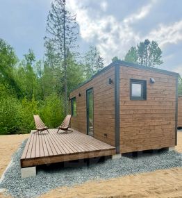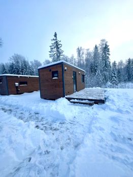 Прекрасный гостевой мини домик с большим панорамным окном и видом на лес и природу.