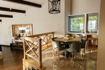 Кухня с обеденной зоной (варочная панель с вытяжкой, кофемашина, посудомоечная машина, СВЧ-печь, холодильник, мойка, электрический чайник, кухонная и столовая посуда, системы хранения, обеденный стол, шесть стульев, барная стойка + 3 барных стула)