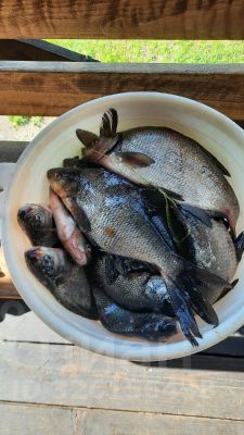 В реке тоже есть рыба: сиг, подлещик, щука, окунь, , салака.