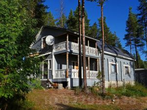 Категория коттеджа апартаменты. Аренда коттеджа в Карелии для отдыха компанией до 13 человек или нескольких семей. Коттедж Медведь двухэтажный. На каждый этаж отдельный вход. На каждом этаже: Wi-Fi, по две отдельные спальни, по обустроенной кухне (фильтры питьевой воды "Аквафор"), по санузлу с душем, просторные холлы. С террас коттеджа красивый вид на озеро Куйто.