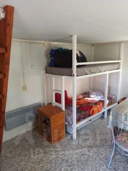 На первом этаже: двухъярусная кровать, обеденный стол, стулья, телевизор, микроволновая печь, холодильник, умывальник, электро плита ( на 2 комфорки )