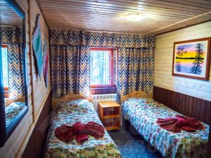 Коттеджи 2-3-4 Семейный. Мини на турбазе ВелТ. В таких коттеджах по 2 основных (одна большая кровать или две односпальные кровати в зависимости от комплектации коттеджа) + 2 дополнительных места (матрасы в лофте), в коттедже комфортно может разместиться до 4-х человек. Великолепный вид из окна любого коттеджа откроет вам шикарную панораму на гладь озера Среднее Куйто. Отдельно стоящие домики с кухнями. Категория апартаменты. Идеальный вариант для семейного отдыха на турбазе в Карелии!
