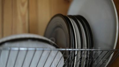 На первом этаже кухня со всем необходимым: плита, мультиварка, холодильник, посуда.