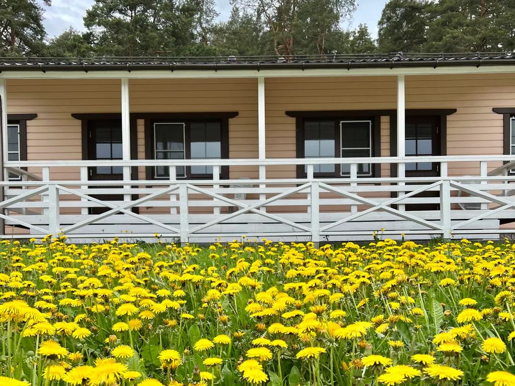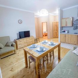 Одноэтажный коттедж дуплекс с собственной террасой и уличной мебелью для барбекю. Оборудован необходимой бытовой техникой, посудой и принадлежностями для комфортного отдыха. В коттедже доступны две отдельные спальни: взрослая — с двуспальной кроватью, детская — с двумя кроватями. В гостиной установлен раскладной диван на двух человек. Дополнительно на территории расположены финская сауна и современный гриль хаус для приготовления на углях мяса, рыбы, овощей или сыра.