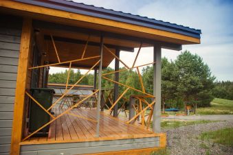 Дом стоит в уединенном месте непосредственно на берегу, с видом на речку вехкасуо. Панорамные окна в гостинной на реку, в спальне — завораживающий прямой вид на залив харвионлампи ладожского озера.