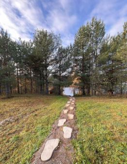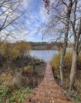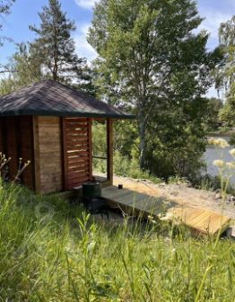 Большая частная территория 2 Га граничит с тихой лагуной Ладожского озера, окружена лесом.