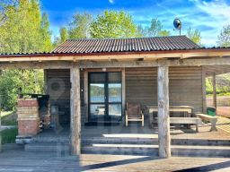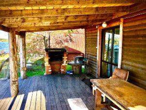 Небольшой уютный дом, площадю 50 м². Огромная веранда с видом на озеро. Размещение 4+2 человека. Гостиная-кухня, вся техника, посуда, в гостиной раскладной диван, ТВ, обеденный стол. Спальня с двуспальной кроватью и раскладным диваном. Туалет, душ.