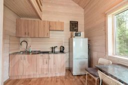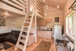 Для бронирования доступны 3 различных коттеджа: "Черника", "Мята", "Брусника". Каждый из них оборудован всем необходимым для комфортного проживания: кухонным уголком с плитой, холодильником, чайником, микроволновой печью с обеденным столом, собственной ванной комнатой с душем и стиральной машиной.