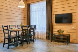 Представьте: тёплый камин, просторная гостиная, сауна и всё необходимое для комфортного отдыха с семьёй или друзьями! В нашем коттедже с двумя спальнями с удобством разместится компания до 6 человек.