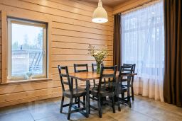 Вечером соберитесь за большим обеденным столом в гостиной, где камин создаст атмосферу тепла и уюта. А для любителей кино у нас есть Smart TV с большой диагональю.