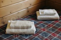 Домики оснащены всем необходимым для комфортного отдыха. В них есть мини-кухня с посудой, плитой, чайником и холодильником, собственная ванная комната с душем, телевизор. В домиках расположены конвекторы, а в коридоре и душевой - теплые полы. Бесплатно предоставляются тапочки при необходимости.