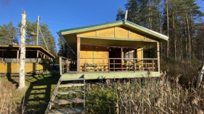 На территории размещены: 3 отдельных отапливаемых коттеджа, гостевой корпус на 9 номеров (5 двухместных и 4 эконом на 6-8 мест), банный комплекс 48 кв. м с парилкой, верандой и мостками с выходом на озеро, кафе 35 кв. м с кухней, хоз. блок 54 кв. м, причалы свайный и понтонный, 3 легких лодки и 1 моторная лодка, 10+ велосипедов, квадроцикл, теплица. Водоснабжение и канализация в рабочем состоянии, системное техническое обслуживание.