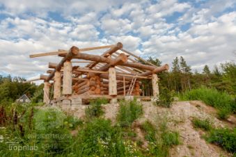 По проекту планируется: 3 дома из бревна (дом 75 кв.м. (собран), 2 дома по 120 кв.м. (есть фундамент, бревна на срубы лежат на площадке) и баня на воде 70 кв. м. (бревна на баню лежат на площадке)