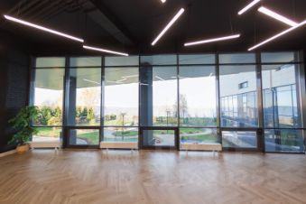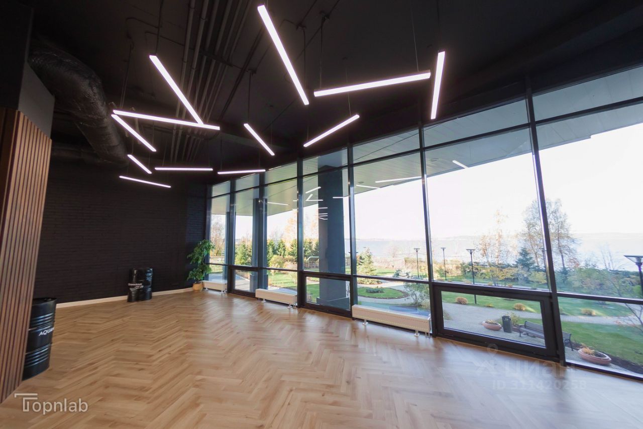 Панорамное остекление не только наполняет помещение естественным светом, но и добавляет ему роскоши. "Стеклянная стена" дарит потрясающий вид из окон на озеро на уровне 2 этажа.