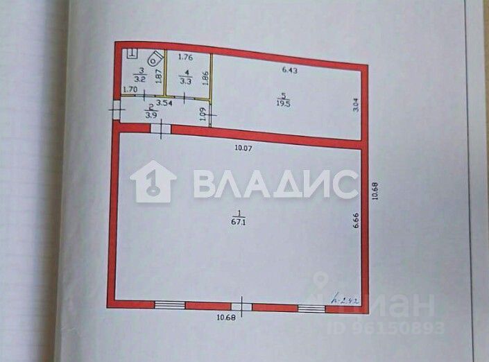- Основной зал: 67,1 кв.м.