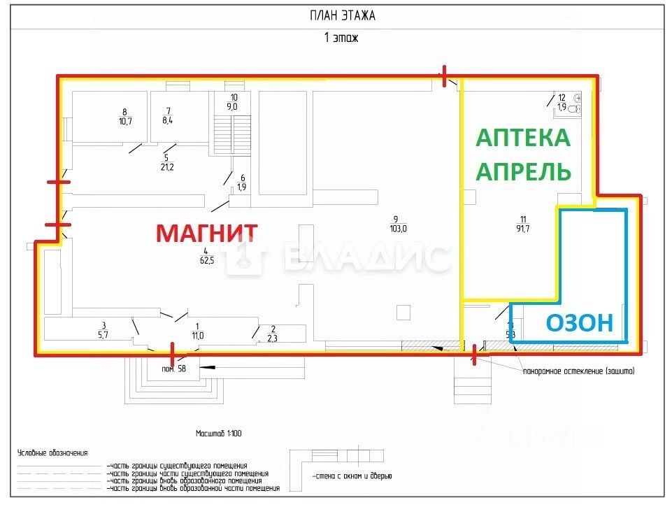 + Соседнее помещение (91,7 кв.м). из них 60 кв.м. занимает аптека "Апрель" и 31,7 компания Ozon.