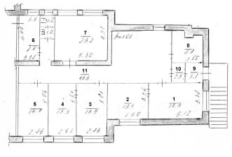7 кабинетов, холл, помещение для кухни, хоз.вещей, сан. узел.