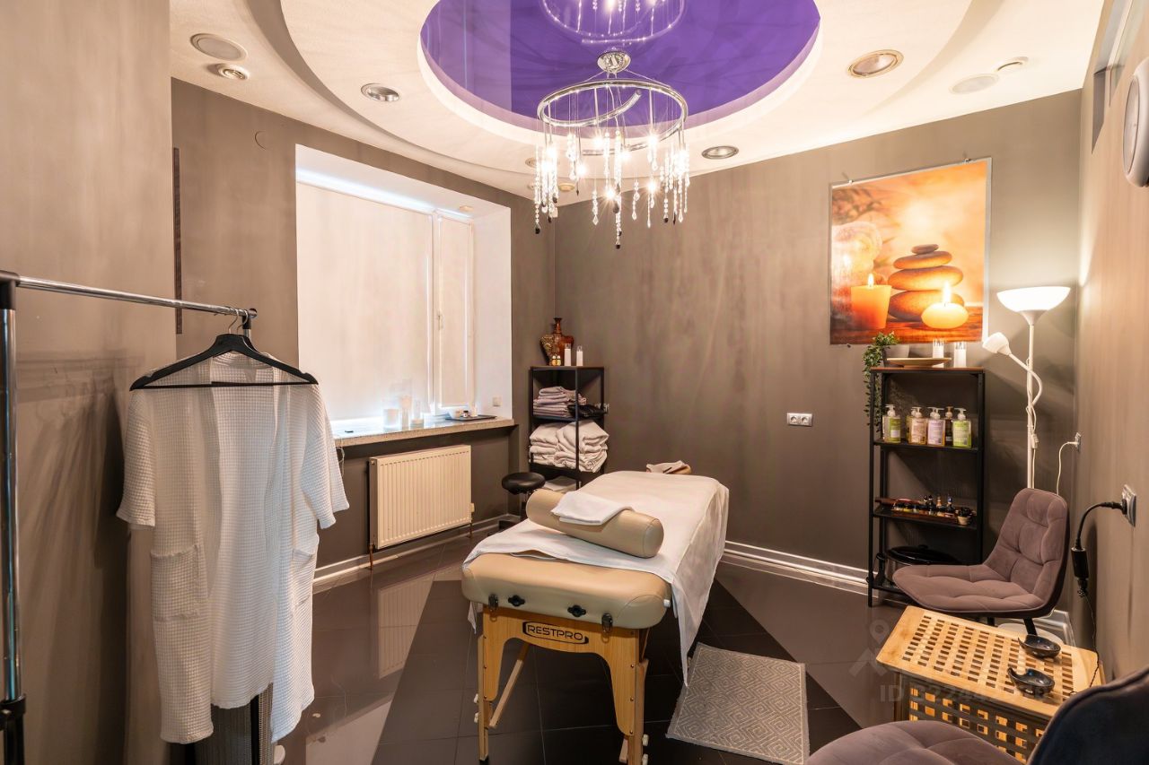 Помещение 102,6 м² полностью оборудовано под салон: есть всё необходимое для маникюра, педикюра, парикмахерского зала, косметологического кабинета, СПА-капсулы, а также вертикальный и горизонтальный солярий и комната отдыха.
