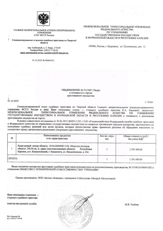 Нежилое помещение, КН 10:04:0000000:3164, расположенное по адресу: РК, г. Кондопога, ул. Кондопожская, д. б/н, площадью 296,8 кв.м., Вид права - собственность. Дом по данному адресу не включен в Региональную программу капитального ремонта общего имущества в многоквартирных домах, расположенных на территории РК, в связи с чем Фонд не осуществляет деятельности по начислению взносов на капитальный ремонт общего домового имущества собственниками вышеуказанного дома.