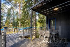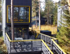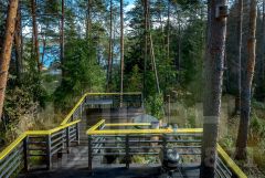 Глэмпинг расположен на скале, с которой открываются виды на Ладожские шхеры. Построен по уникальному проекту, разработанному молодой командой архитекторов из Санкт-Петербурга. Архитектурный стиль с отсылкой на шведскую архитектуру, напоминает гостям о том, что на этом месте находилась шведская деревня. Уникальная архитектура и организация пространства не имеет аналогов на Северо-Западе и в Карелии.