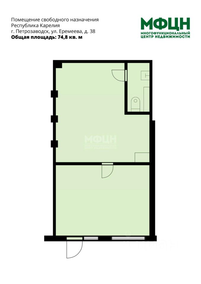 Общая площадь объекта: 74,8 кв. м, месячная арендная плата составляет 85 000 рублей.
