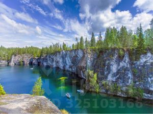 В 1 км от базы находится лестное озеро с нашими лодками и пирсом.