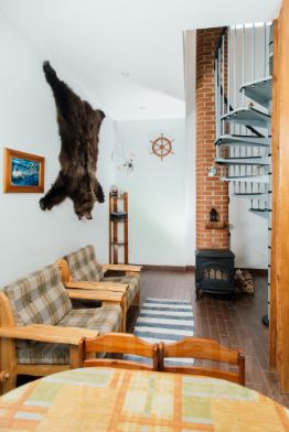 — Планировка: Первый этаж - терраса, летняя столовая зона, гостиная-столовая, камин фирмы Jotul, санузел с душем/ванной, туалет. Второй этаж с 1 спальней имеет дополнительный туалет на втором этаже, а также видовой балконом на Онежское озеро.