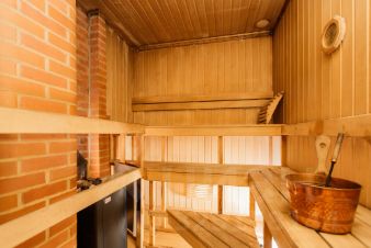 - Общая площадь: 48 кв.м. Она состоит из зоны отдыха, парилки и санузла. Комплекс находиться на первой береговой линии и имеет вид на озеро.