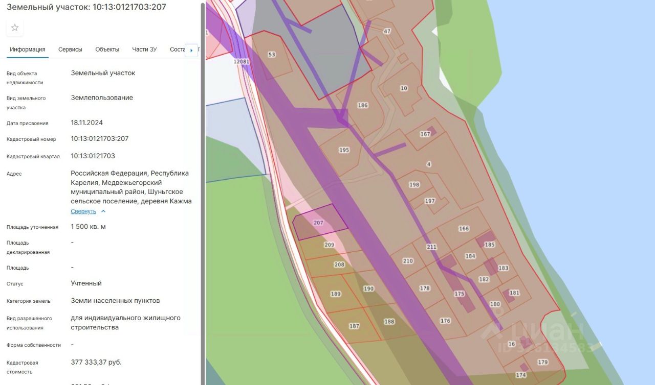 Продажа земельного участка из земель населенных пунктов, имеющего кадастровый номер 10:13:0121703:207, площадью 1500 кв.м., месторасположение: Российская Федерация, Республика Карелия, Медвежьегорский муниципальный округ, д. Кажма, вид разрешенного использования: Для индивидуального жилищного строительства. Территориальная зона - Ж-1. Зона застройки индивидуальными жилыми домами