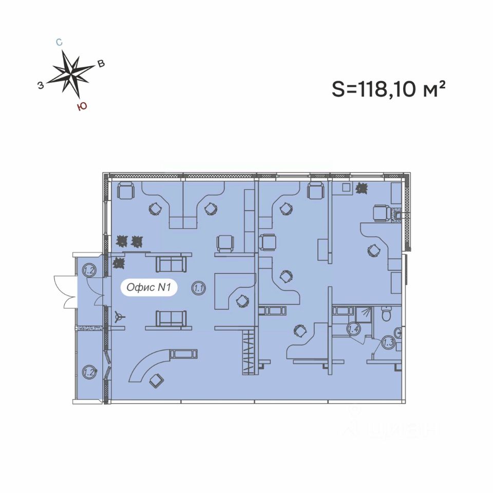 Общая площадь: 118,10 м² м²
