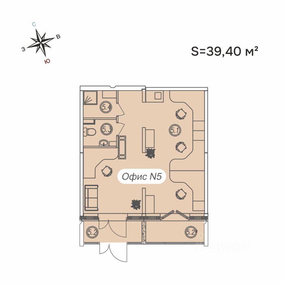 Офис 5 (площадь 43,6 м²) — 1 этаж, отдельный выход на Первомайский пр. Качественный ремонт, потолки 3 м, 7 кВт. Современный дом 2018 г., 17 этажей.