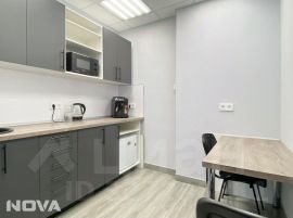 В офисе остается: кухня, микроволновая печь, мини холодильник, чайник, кухонный стол, рабочие столы в кабинетах, стулья, стеллажи, диван в холле, полки в техническом помещении.